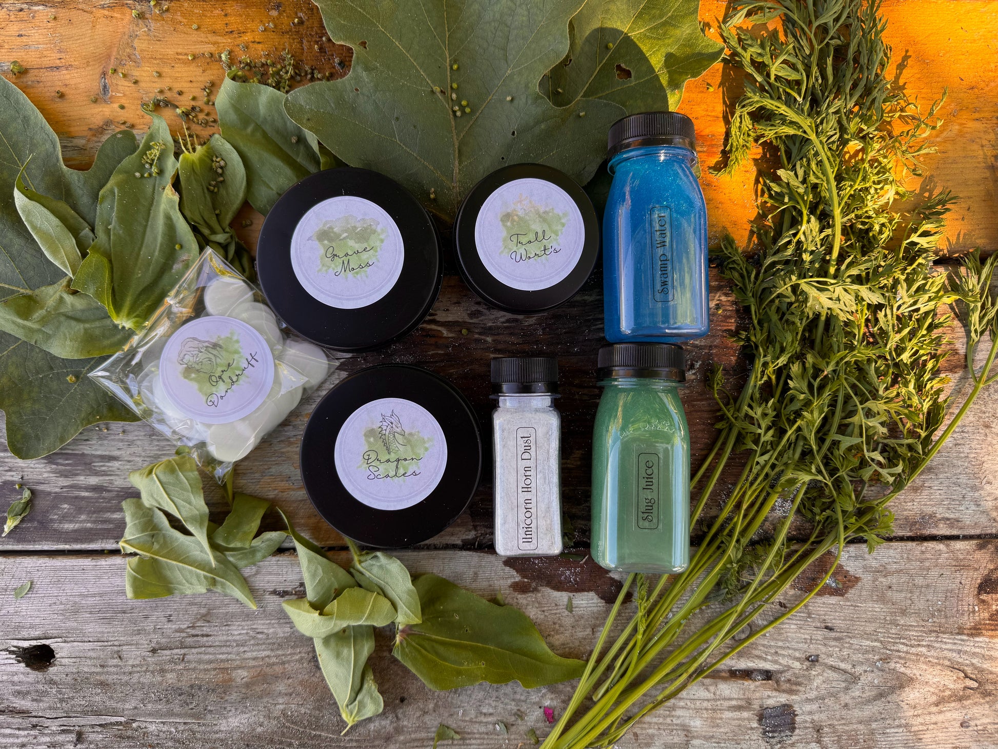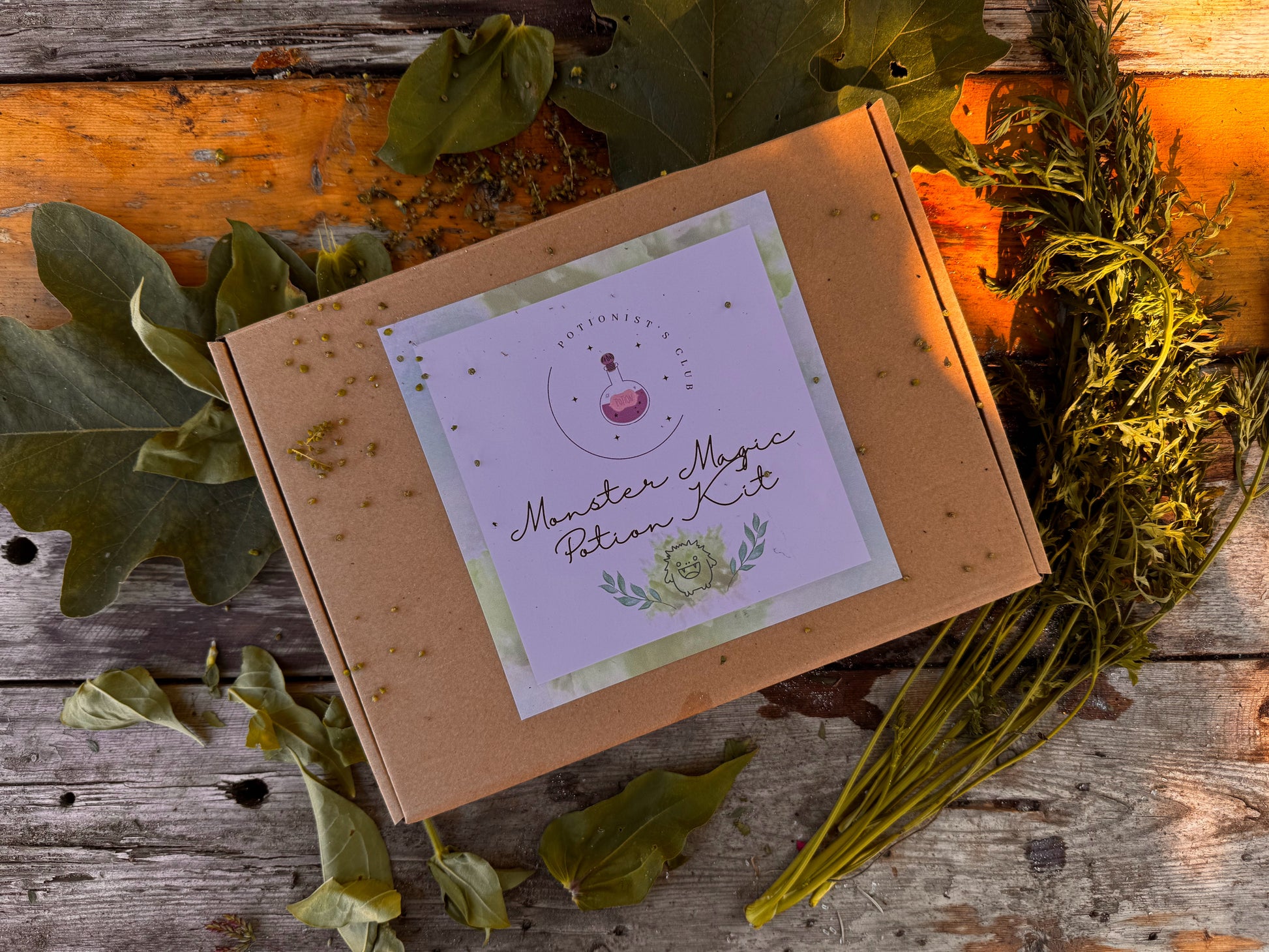 Each kit comes with all the ingredients to make the potions, a wooden spoon, spell card, affirmation cards and a reflection card.